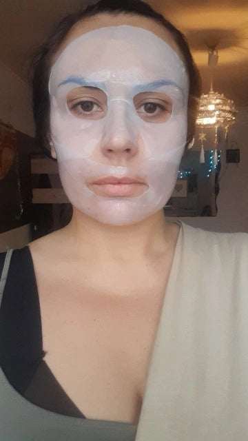 👉 Après avoir nettoyé et séché votre peau, dépliez délicatement le masque et appliquez-le sur votre visage en l’ajustant bien aux contours. Laissez poser 15 à 20 minutes, puis retirez-le et massez doucement l’excédent de sérum jusqu’à absorption complète.